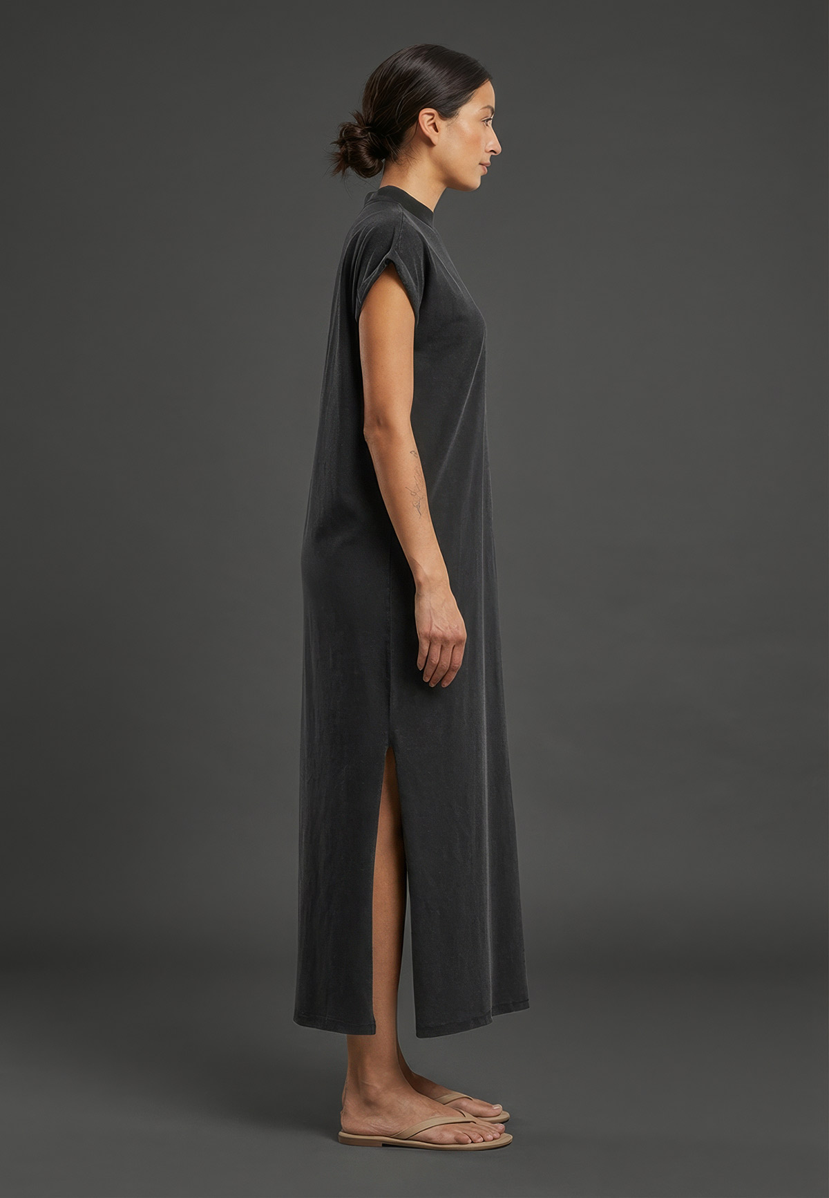 - Vysoký bočný rozparok dodáva šatám ležérny a nadčasový charakter.