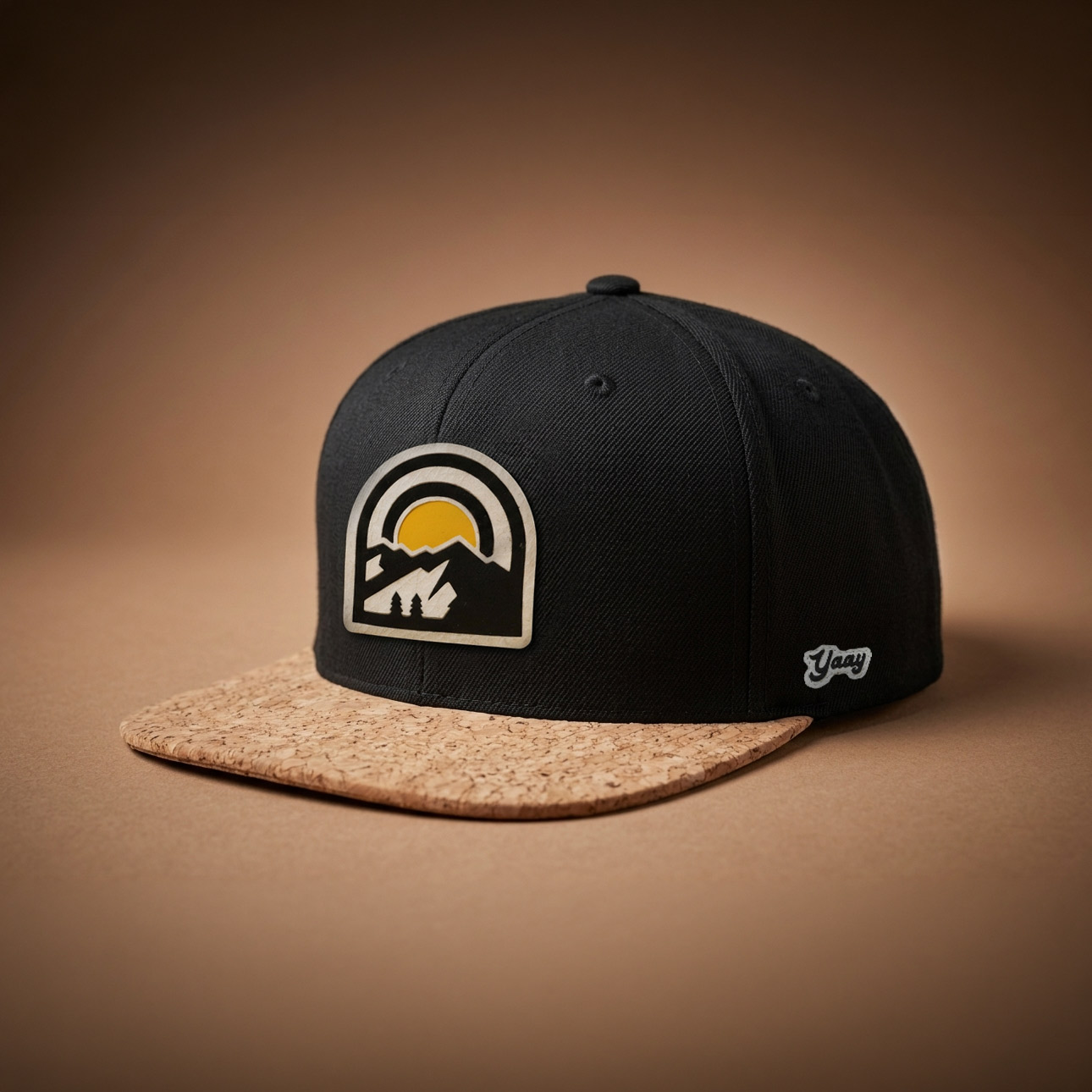 Čistý front, výrazný detail. Táto snapbackka stavia na kontraste – minimalistická čierna korunka + Flat visor z pravého korku, ktorý okamžite chytí oko.