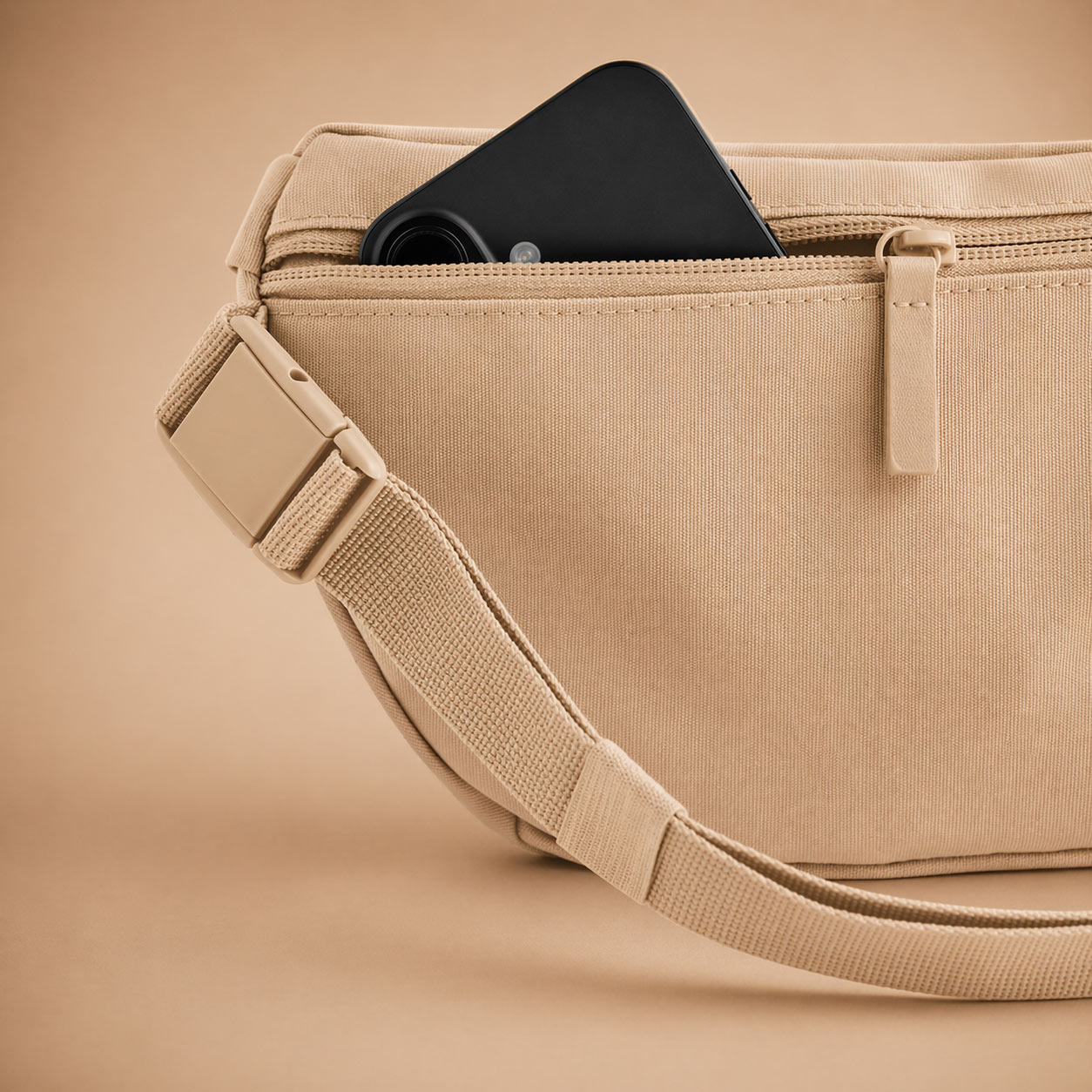 Vyrobená zo 100% recyklovaného polyesteru, s jemnou štruktúrou a čistým tvarom, ktorý drží formu. Nepremokavý materiál ochráni veci, nastaviteľný popruh sadne presne tak, ako chceš.