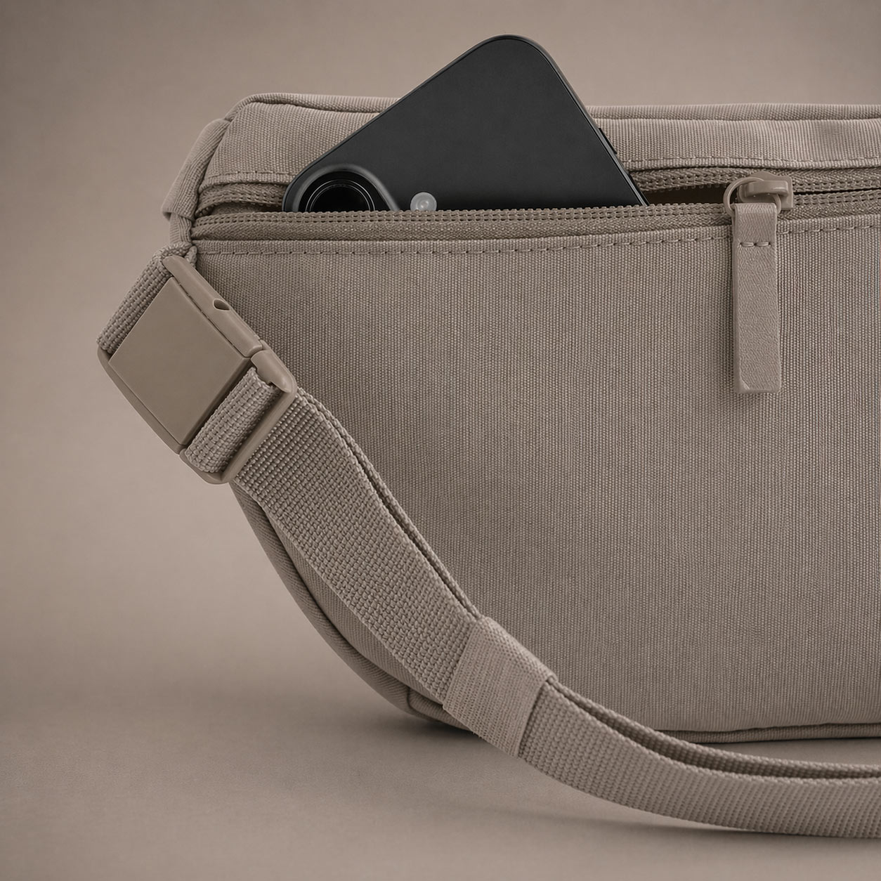 Vyrobená zo 100% recyklovaného polyesteru, s jemnou štruktúrou a čistým tvarom, ktorý drží formu. Nepremokavý materiál ochráni veci, nastaviteľný popruh sadne presne tak, ako chceš.