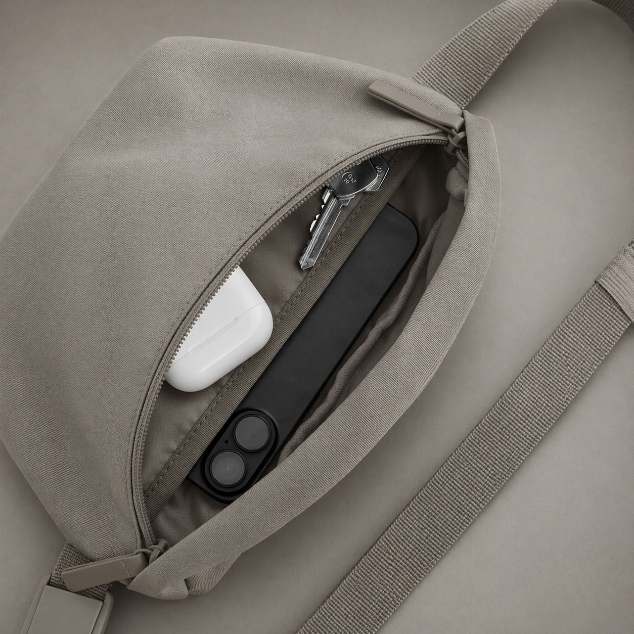 Vo vnútri máš poriadok – hlavná komora, vnútorné vrecko a zadný zip pre rýchly prístup.